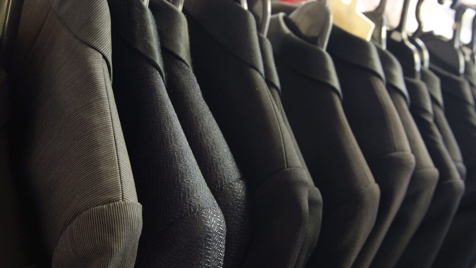ドライクリーニングとマシンプレスで仕上げて、厚み20ミリのハンガーを使用します